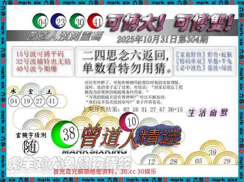 304期:〖合数单双〗合双】开:马48准